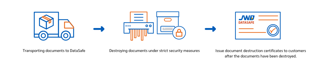 DataSafe, a leader in document and information management services, uses a standardized destruction mechanism to eradicate all sorts of documents and data. There is also a document control system in place, as well as stringent security measures. Customers can attend to inspect the destruction at any time during the process. They may be certain that their documents and sensitive data will be securely destroyed. Furthermore, the company provides document and data destruction certificates that are delivered to consumers after the destruction is complete.